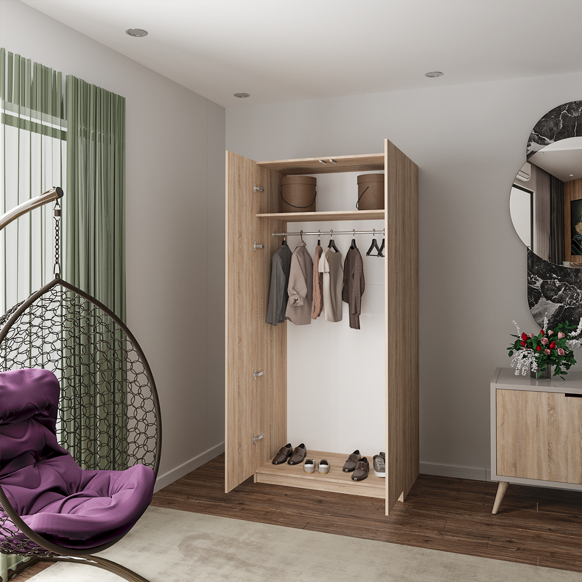 Распашной шкаф "Кальви" – это сочетание функциональности и современного дизайна, идеально подходящее для вашего интерьера. Корпус выполнен из ЛДСП, что обеспечивает прочность и долговечность конструкции.