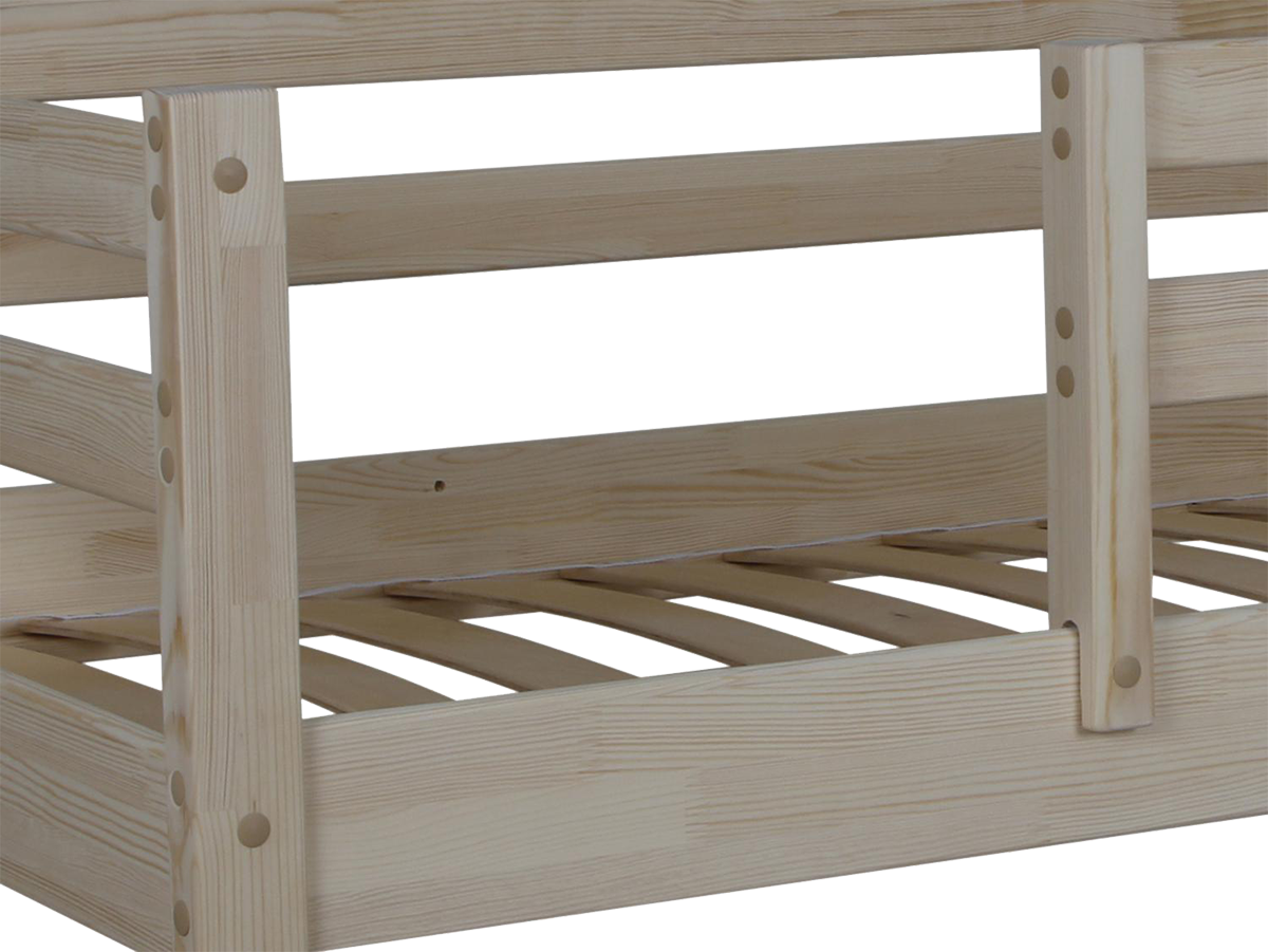 Одноярусная кровать «Кроха-3» из массива сосны - это идеальный выбор кроватки для вашего ребенка. Простая, прочная конструкция без лишних элементов сочетает в себе экологичность натурального дерева и практичность.