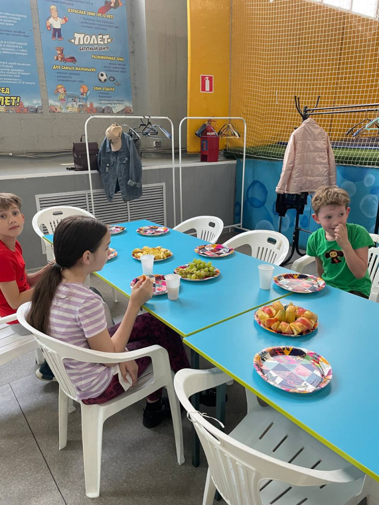 А какой праздник без угощения? Правильно, никакой! Пицца, фрукты, соки, все самое вкусное и обожаемое нашими малышами.